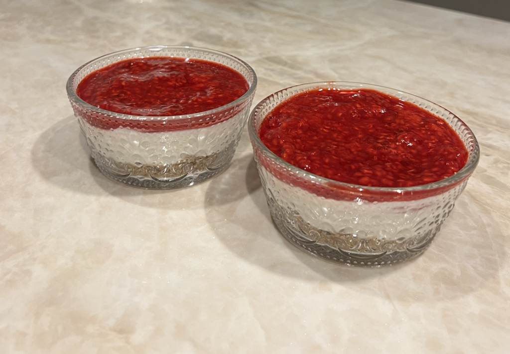 - Voeg als laatste de gesmolten frambozen toe en dan is de cheesecake klaar!